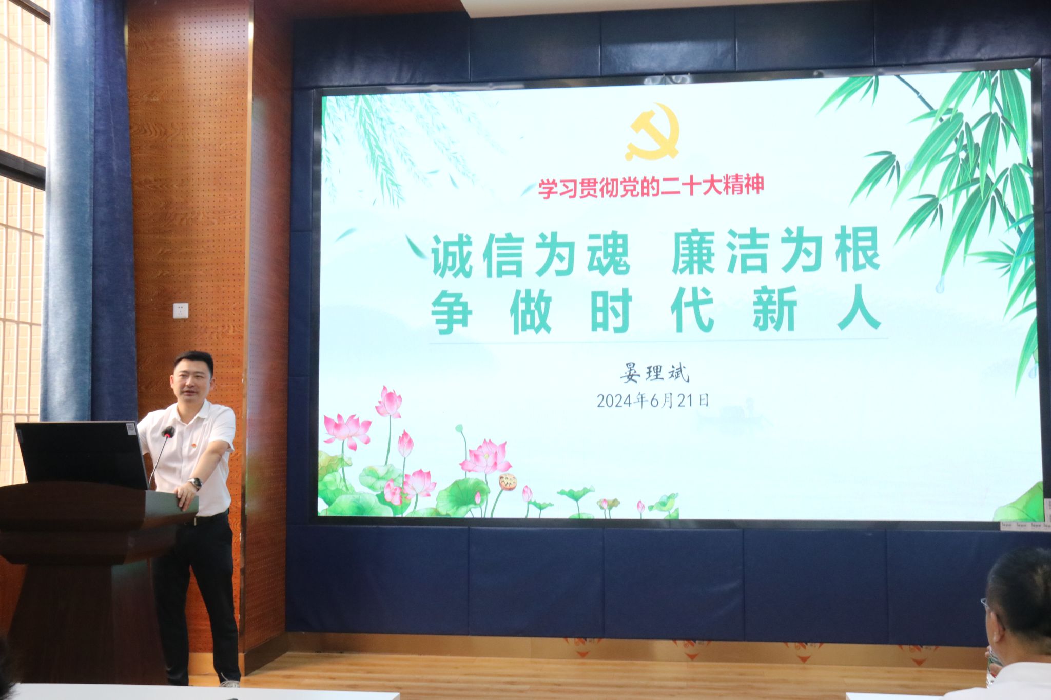 随后,晏理斌同志开展廉洁教育,从“探诚信廉洁之价值,修诚信廉洁之品德”两个角度出发,通过对诚信廉洁理论内涵的讲解,结合中国共产党的廉洁文化教育,强调了党的纪律的重要性,也让毕业生党员知道如何在生活中遵守党的纪律,号召党员们必须坚决抵制不良行为,以身作则,做到诚实守信、廉洁自律,始终保持共产党员的先进性和纯洁性,恪职守责,为党的事业和社会发展贡献力量。通过此次党课希望能够引导毕业生党员在踏上职业生涯前筑牢清正廉洁意识,激励广大毕业生党员在新的人生征途上坚守初心、勇担使命,发挥先锋模范作用。