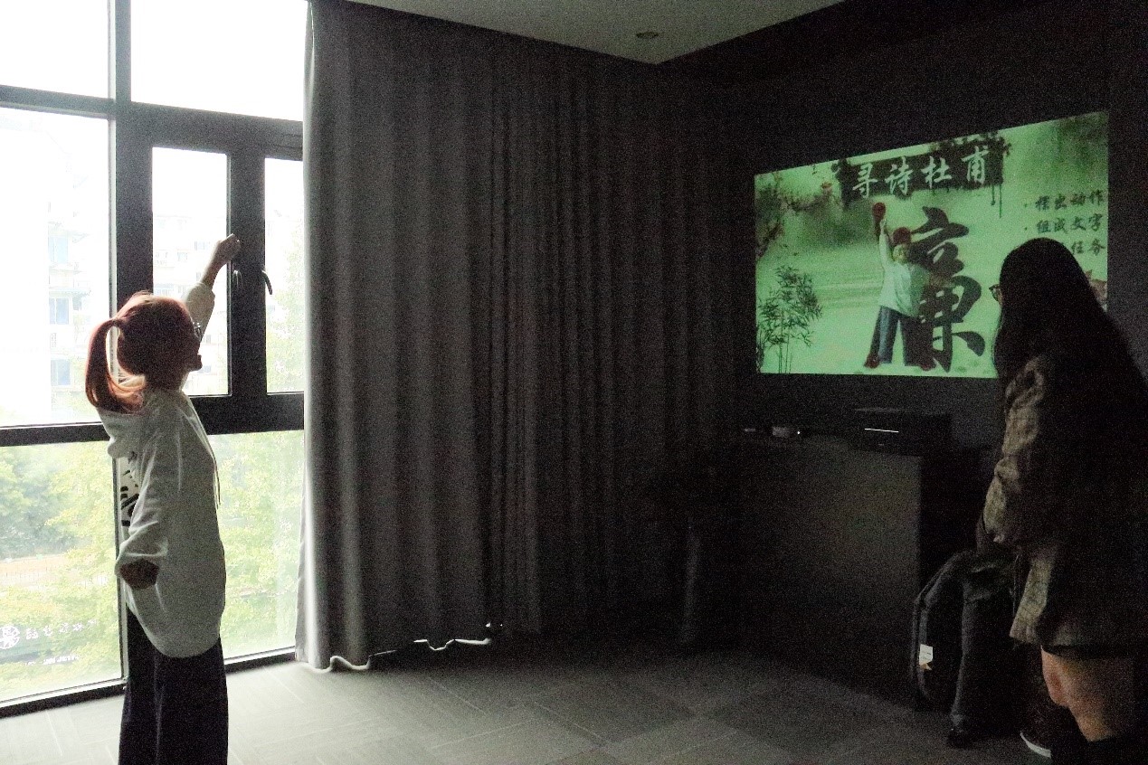 活动中,成都动漫廉洁基地的负责人向大家介绍了基地的logo设计和历史,让同学们在讲解过程中领悟到廉洁的深层次内涵。随后,通过让同学们观看基地自己制作的关于苏轼的家风廉洁视频,再次领悟到廉洁对于社会、家庭、个人的重要性。接下来,基地负责人带领同学们感受了270°沉浸式宣传片“浣花莲”,同学们通过沉浸式的体验,从不同职业、不同群体应该如何做到廉洁自律有了感性的认识。在动漫廉洁基地,同学们还集体参与了廉洁答题以及关于廉洁自律的体感游戏等。多途径,全情投入式的关于廉洁的现场教学让同学们切身受到了廉洁文化的浸润和熏陶。
