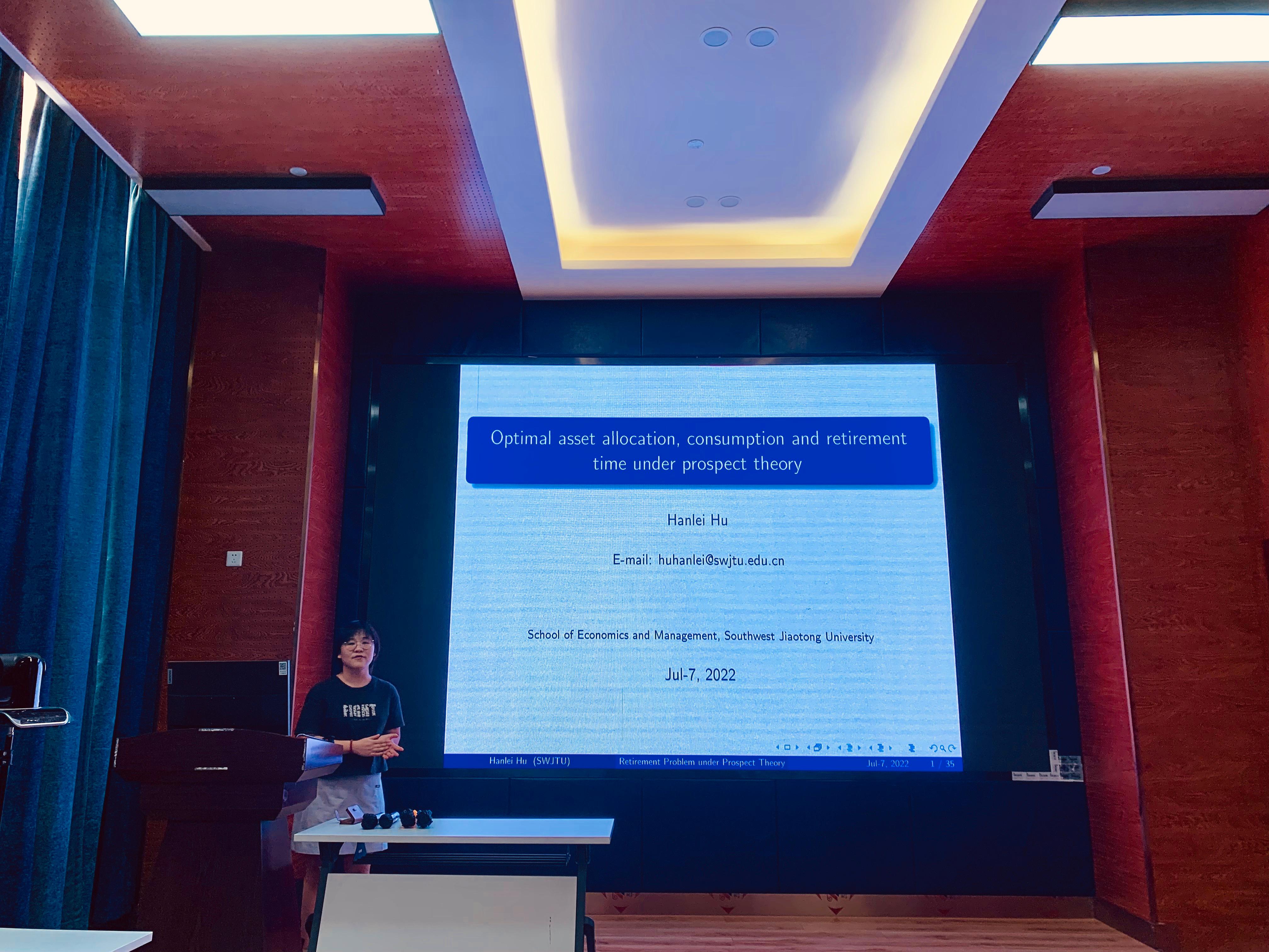 2022年7月7日下午3点,英国上市365官网会计学系诸波老师和金融与财务学系户晗蕾老师在九里校区0218室分别开展了题为“Carbon risk and maturity mismatches: Evidence from China”、“Optimal asset allocation, consumption and retirement time under prospect theory”的学术研讨会。会议由金融与财务学系副系主任郭姝辛老师主持,英国上市365官网部分教师及研究生参加了本次学术交流活动。