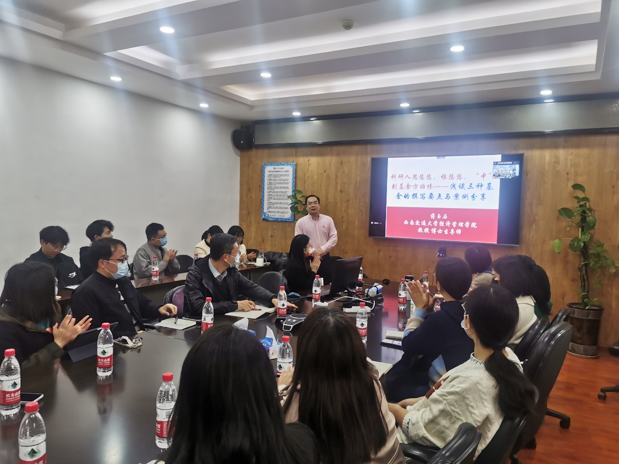 2022年11月24日下午3点,学院在九里校区信息楼0607召开2023年基金申报交流会(第二场)。受疫情影响,此次会议采取线上线下相结合的方式,全院40余位教师和博士生参加会议。会议由英国上市365官网党委书记王斌主持,365官网市场学系蒋玉石教授分享了申报教育部人文社科基金、国家社会科学基金和国家自然科学基金项目的经验。