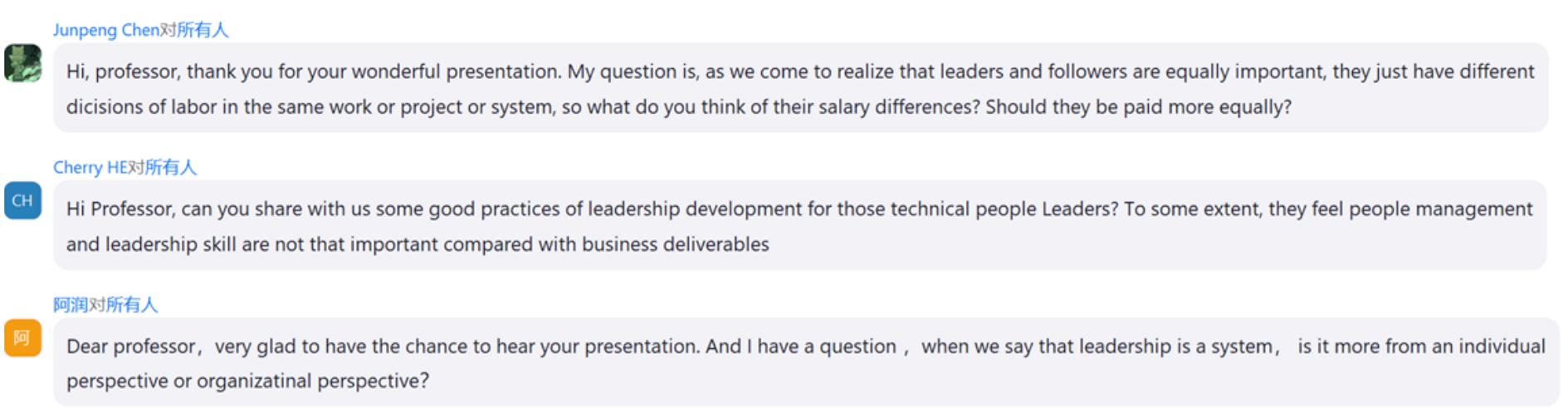 Barbara Kellerman教授随后为大家讲述了领导者、追随者和环境领导力系统三大要素的关键点;还阐述了真正的领导力在生活、工作中的具体运用,以及实施关键点。