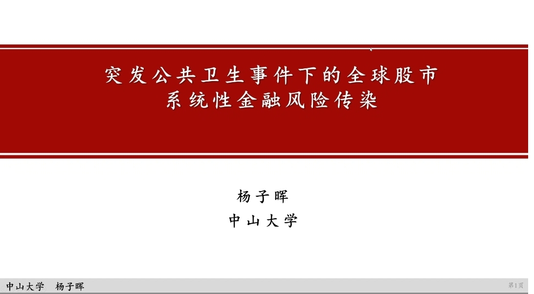 2021年10月19日下午15时,中山大学岭南学院杨子晖教授在线上开展了题为“突发公共卫生事件下的全球股市系统性金融风险传染”的学术报告,英国上市365官网金融与财务学系马锋副教授主持了此次讲座。