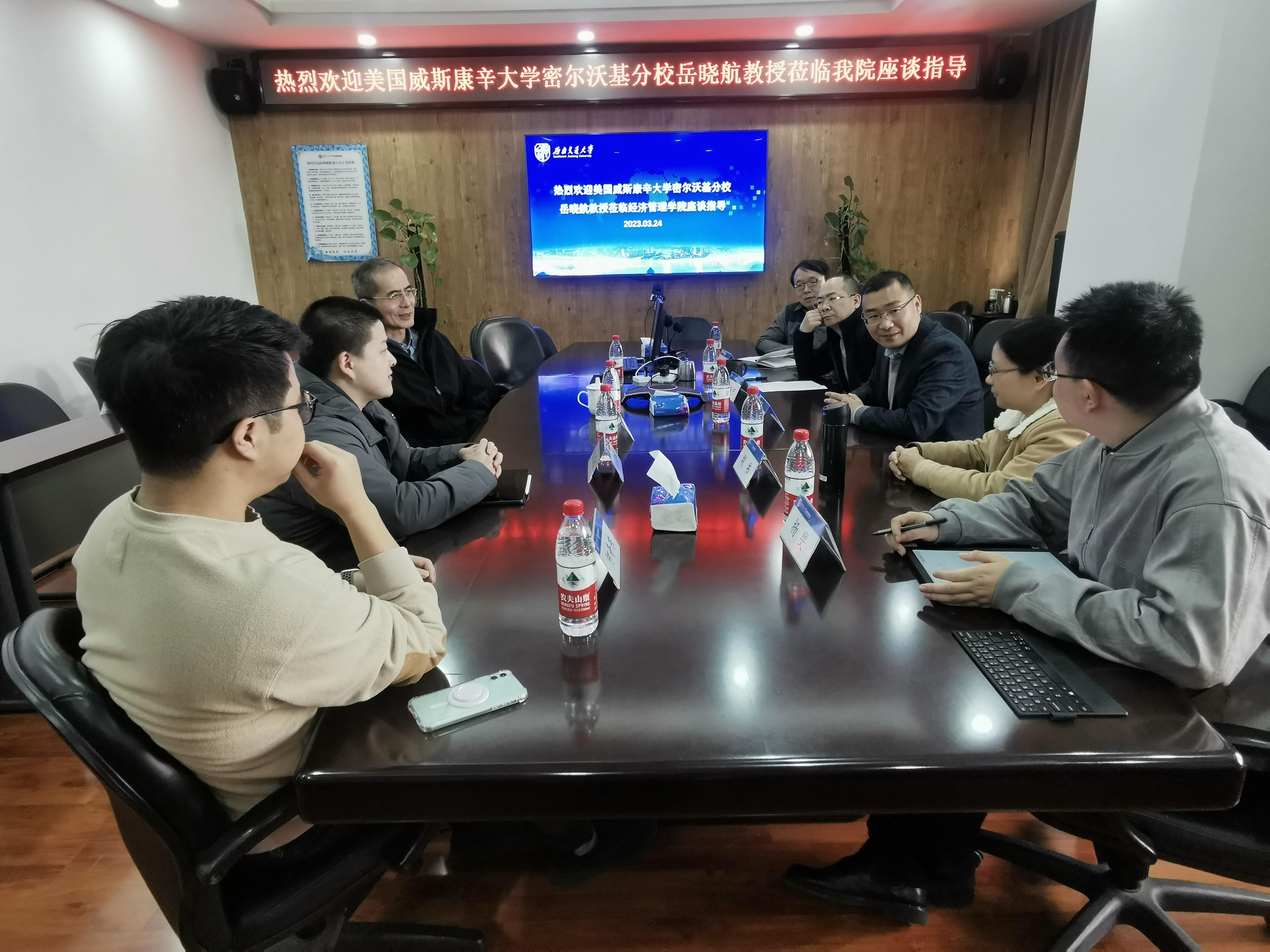 2023年3月24日下午,美国威斯康辛大学密尔沃基分校(The University of Wisconsin-Milwaukee)商学院岳晓航教授应邀来365官网座谈指导。会议由英国上市365官网聂佳佳副院长主持,学院信息系统与运营管理系主任官振中老师以及部分青年教师参与座谈。