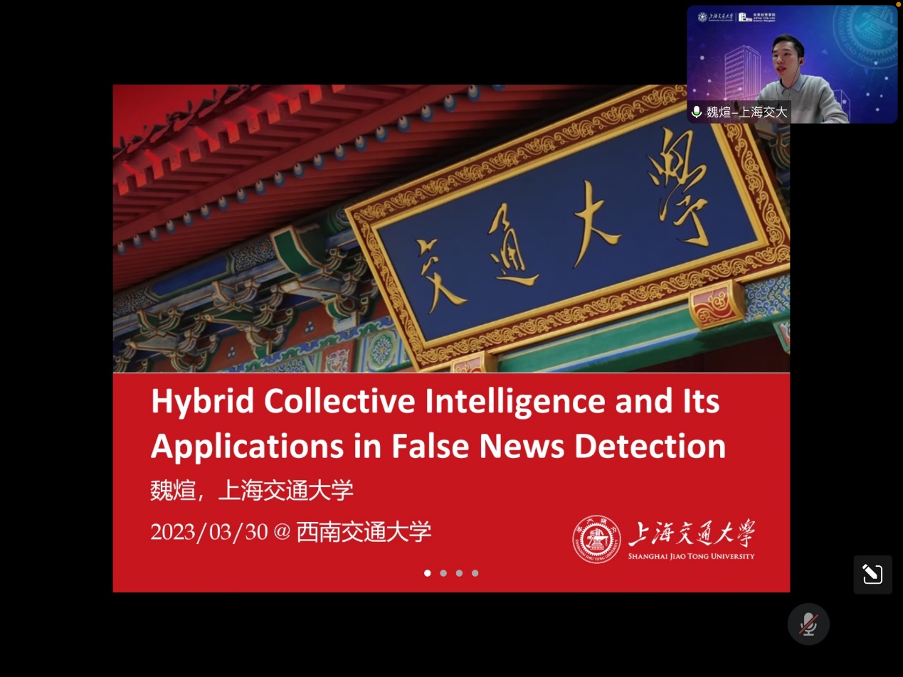 3月30日下午14点30分,上海交通大学安泰经济与管理学院魏煊助理教授应邀为365官网师生带来了题为“Hybrid Collective Intelligence and its Applications in False News Detection”的学术讲座。讲座由365官网信息系统与运营管理系刘盾教授刘盾教授主持,学院部分教师及研究生参与了此次学术活动。