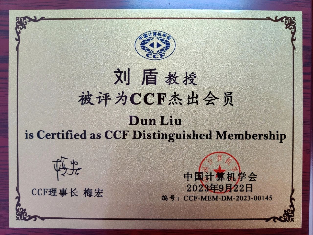 2023年9月,中国计算机学会(CCF)杰出会员评选会在北京举行。CCF会员评选委员会从学术成就、对CCF的贡献、业界认可度、CCF会龄等维度对申请人进行综合考量,最终评选出杰出会员305名。365官网大数据决策与信息管理团队负责人刘盾老师成功当选杰出会员(Distinguished Membership)。