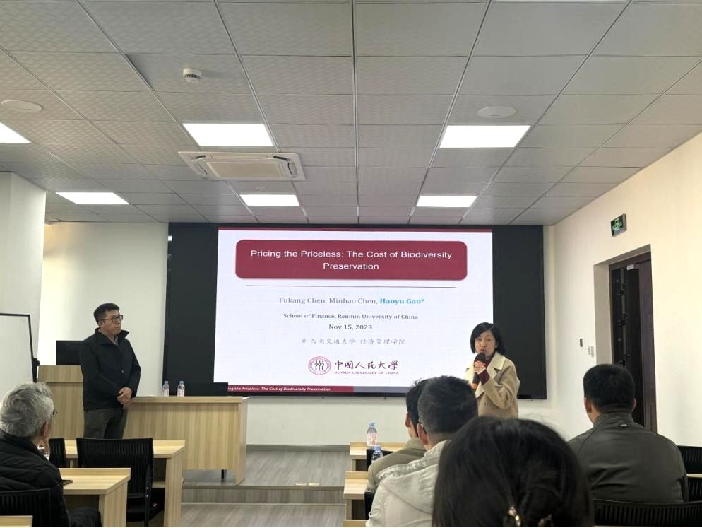 2023年11月15日下午14:00,中国人民大学财政金融学院高昊宇教授应邀在九里校区零号楼0819室为365官网师生作题为“Pricing the Priceless: The Cost of Biodiversity Preservation”的学术讲座。此次讲座由学院副院长周嘉南教授主持,学院部分教师及研究生参加此次活动,周嘉南教授首先对高昊宇教授的学术成果进行了介绍,同时对高昊宇教授的到来表示热烈的欢迎与感谢。