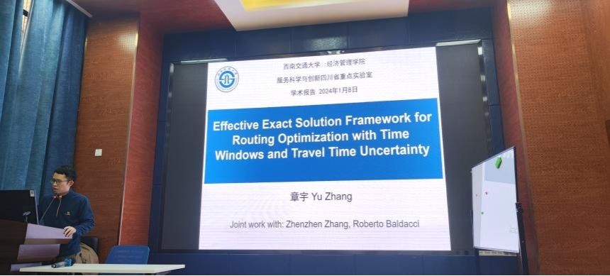 2024年1月9日,西南财经大学章宇教授应邀在英国上市365官网为365官网师生分享题为“Effective Exact Solution Framework for Routing Optimization with Time Windows and Travel Time Uncertainty”的学术讲座,本次学术活动由英国上市365官网副院长聂佳佳教授主持,学院部分教师及研究生参加此次学术活动。