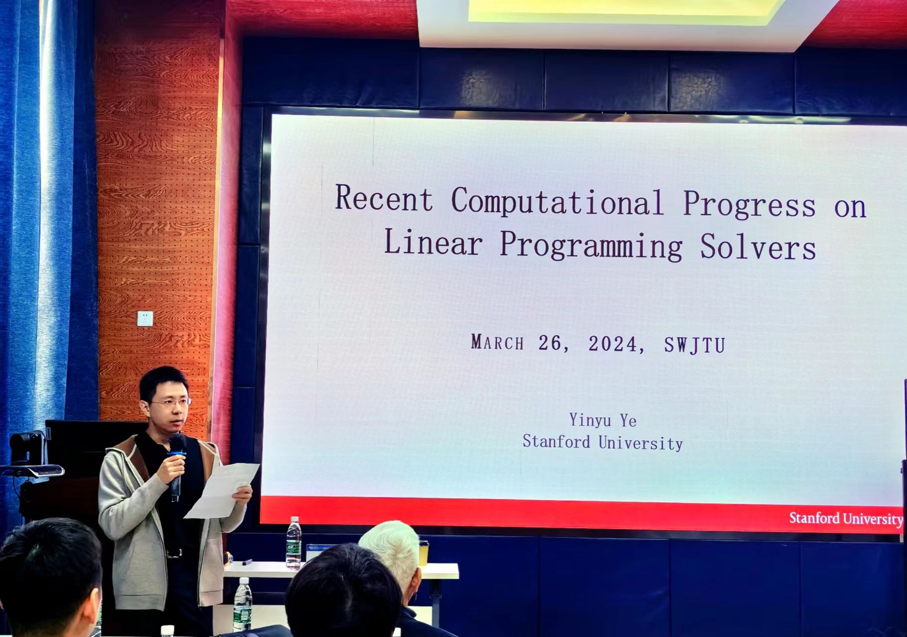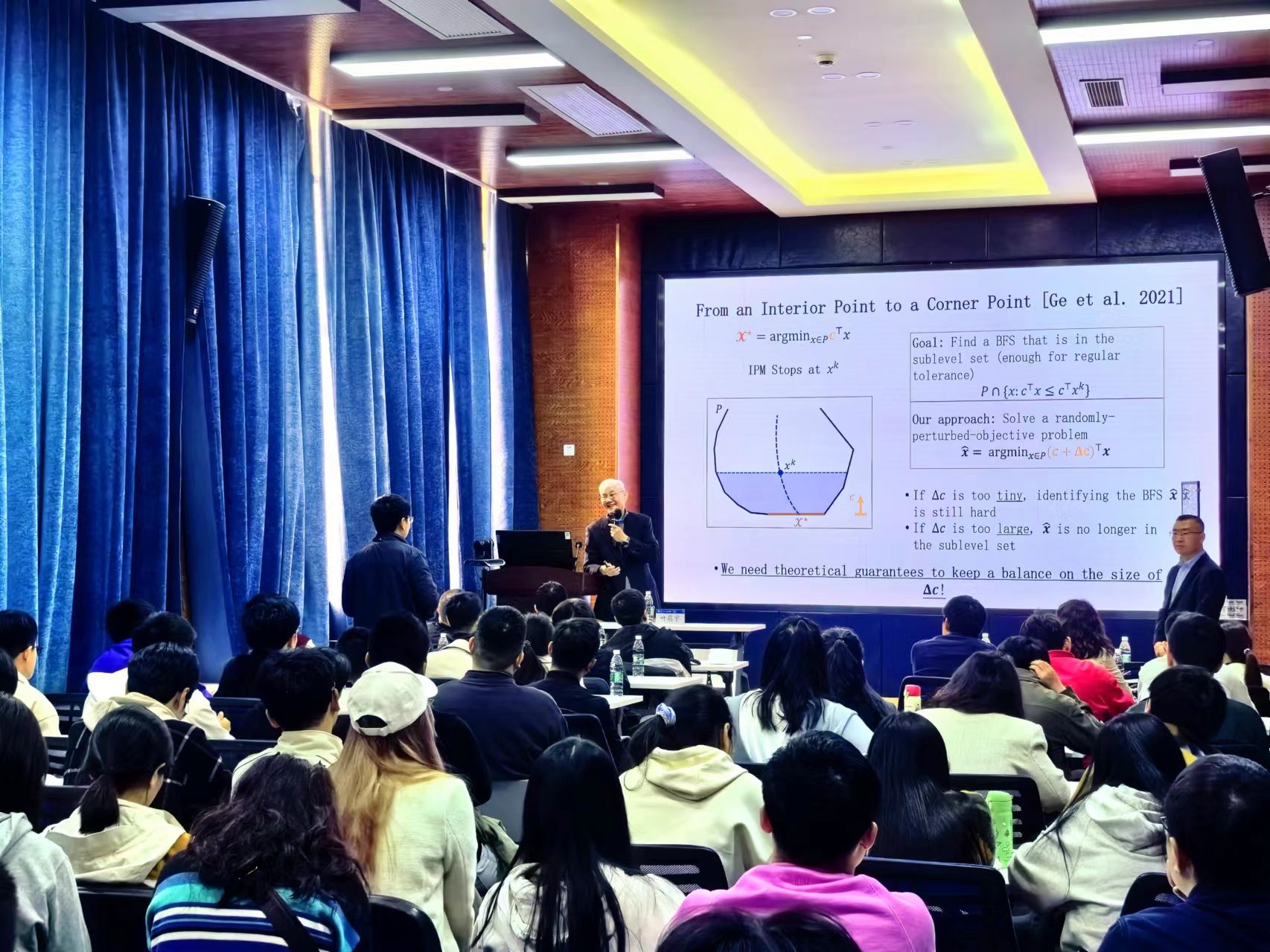 2024年3月26日,美国斯坦福大学叶荫宇教授应邀在英国上市365官网为365官网师生分享题为“Recent Computational Progress on Linear Programming Solvers”的学术讲座。本次学术活动由学院院长韩科教授主持,学院教师及研究生聆听了本次讲座。