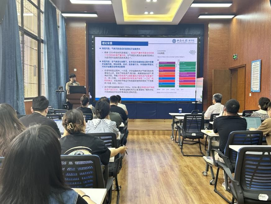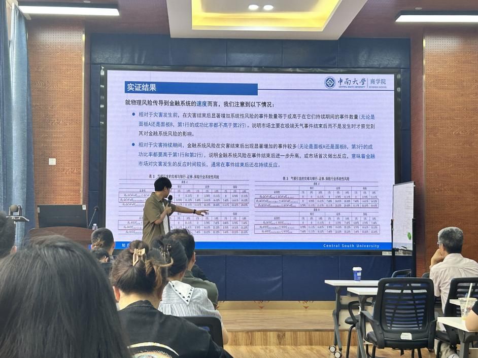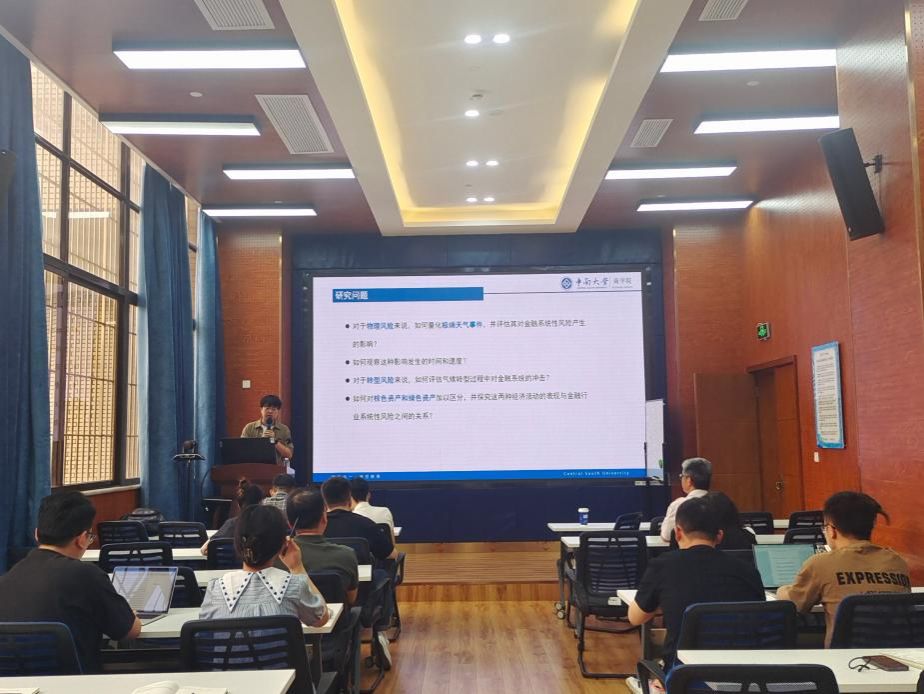 2024年5月14日,中南大学商学院任晓航副教授应邀在学院为365官网师生作题为“绿色资产还是棕色资产?——极端气候事件下的金融系统性风险研究”的学术讲座。此次学术活动由学院马锋副教授主持,学院部分教师及研究生参加此次讲座。马锋副教授对任晓航副教授的学术成果进行了介绍,并对他的到来表示热烈的欢迎与感谢。