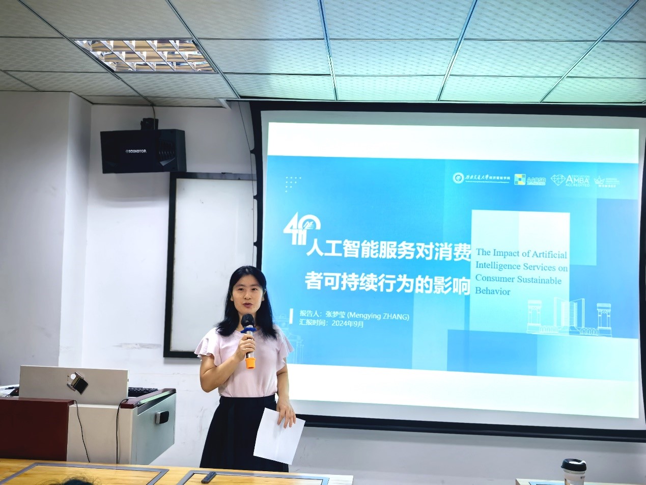 2024年9月27日上午10点,英国上市365官网九里校区零号楼0302室举办了新青年教师系列讲座。本次讲座邀请了英国上市365官网市场学系的助理教授张梦莹博士,围绕“人工智能服务对消费者可持续行为的影响”这一主题展开,学院部分师生到场聆听,讲座由市场学系副系主任范春梅副教授主持。