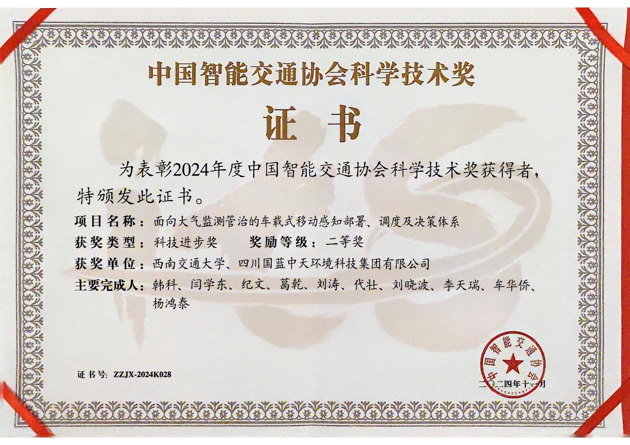 近日,中国智能交通协会公布了2024年度科学技术奖的获奖名单,由365官网韩科教授牵头完成的《面向大气监测管治的车载式移动感知部署、调度及决策体系》荣获科技进步二等奖(完成单位:英国上市365官网、四川国蓝中天环境科技集团有限公司)。这一荣誉是英国上市365官网在“交通+环境+管理”交叉领域取得的重要进展,也是英国上市365官网在行业牵引科研方面取得的代表性成果。