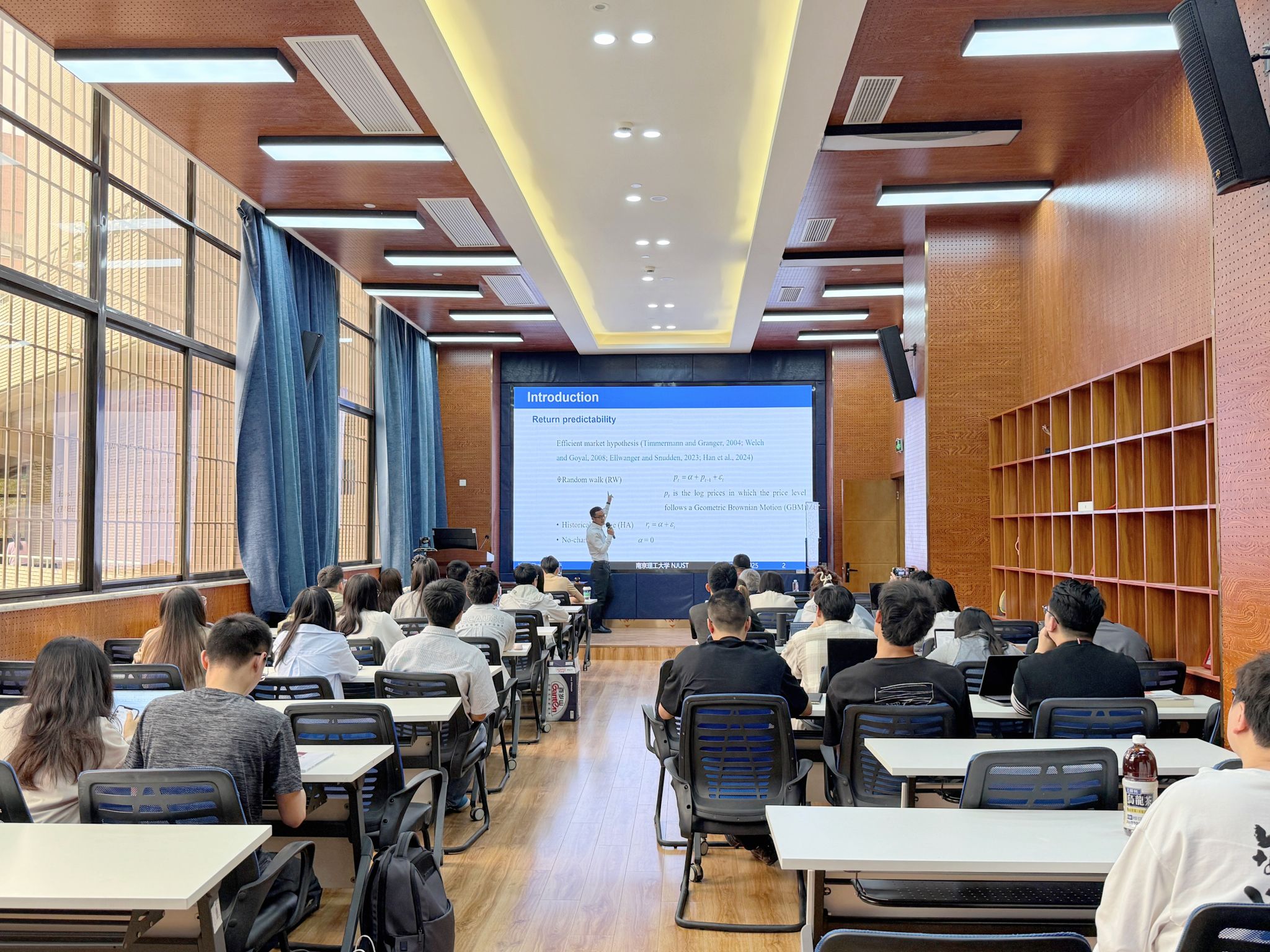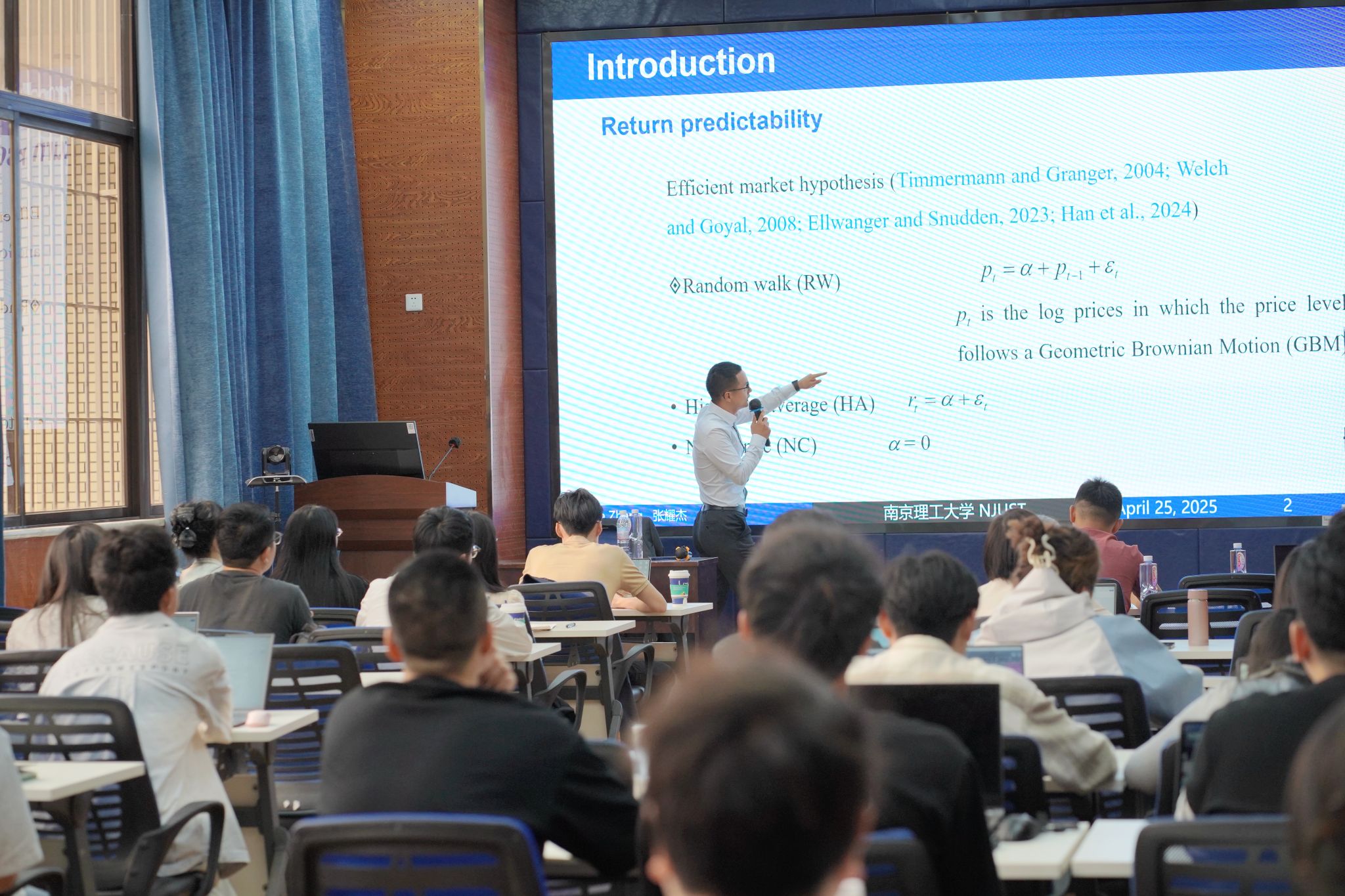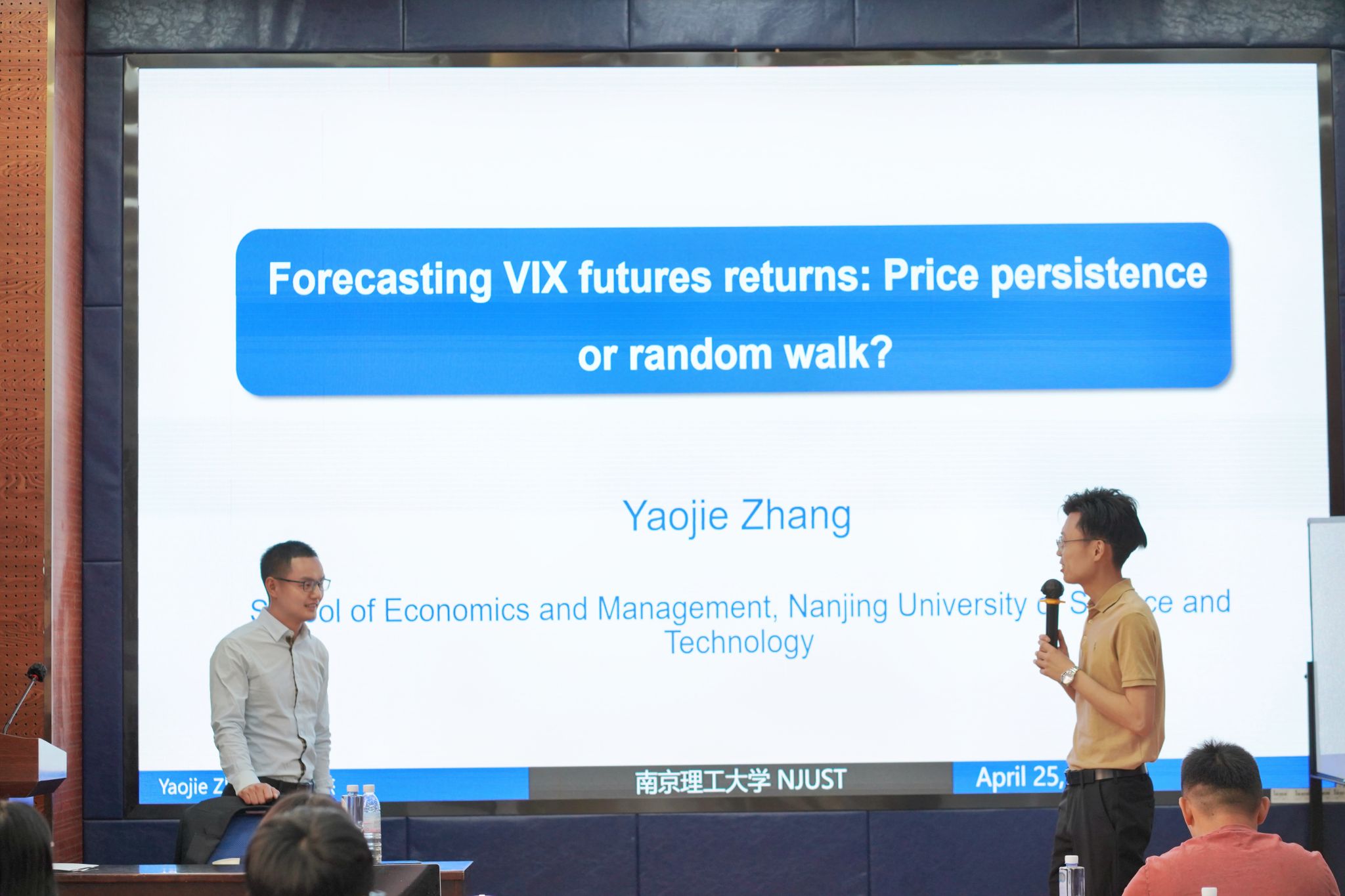 2024年4月25日上午,南京理工大学张耀杰教授应邀在英国上市365官网九里校区英国上市365官网为365官网师生带来了一场题为“Forecasting VIX futures returns:Price persistence or random walk?”的学术讲座。本次学术活动由365官网副院长马锋主持,学院部分教师及研究生积极参与。马锋副院长在开场时介绍了张耀杰教授的学术成果,并对院优秀校友莅临表示热烈欢迎与诚挚感谢。