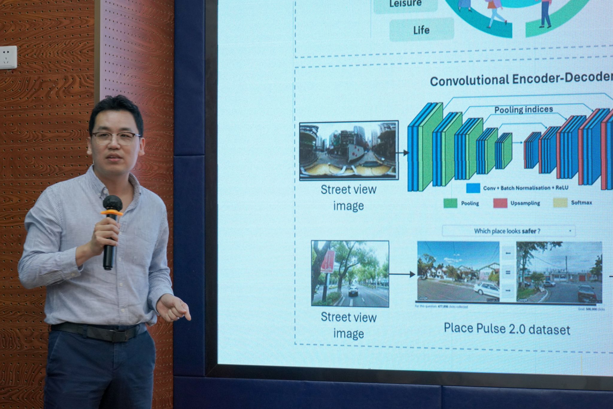 接下来,西交利物浦大学Hyung-Chul Chung副教授作题为“The 15-minute community life circle for older people: Walkability measurement based on service accessibility and street-level built environment – A case study of Suzhou, China”的报告。Chung老师依次介绍了15分钟社区生活圈(15-minute CLC)的基本概念,研究所采用的数据来源与研究方法,以及所得出的关键研究结论。在问答环节,Chung老师与学生围绕城市街景因素的影响,以及是否应为老年群体提供特殊服务等问题进行了深入交流。