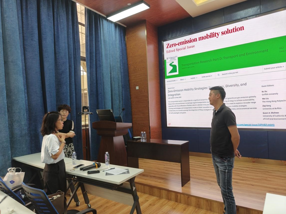 在互动问答环节,现场师生积极提问,杜波老师与现场师生就电动车快速充电问题的模型算法优化思路、该研究的实践基础和现实意义、研究成果商业变现模式等问题进行了深入的探讨,随后杜波老师还针对论文选题方法和高水平国际期刊——“Transportation Research Part D:Transport and Environment”的征稿偏好及投稿经验进行了详细分享。最后,陈彦如教授对杜波老师的精彩分享表示衷心地感谢。本次讲座促进了科研学术的沟通交流,开拓了365官网师生对电动公交车途中快速充电问题的认知与视野。