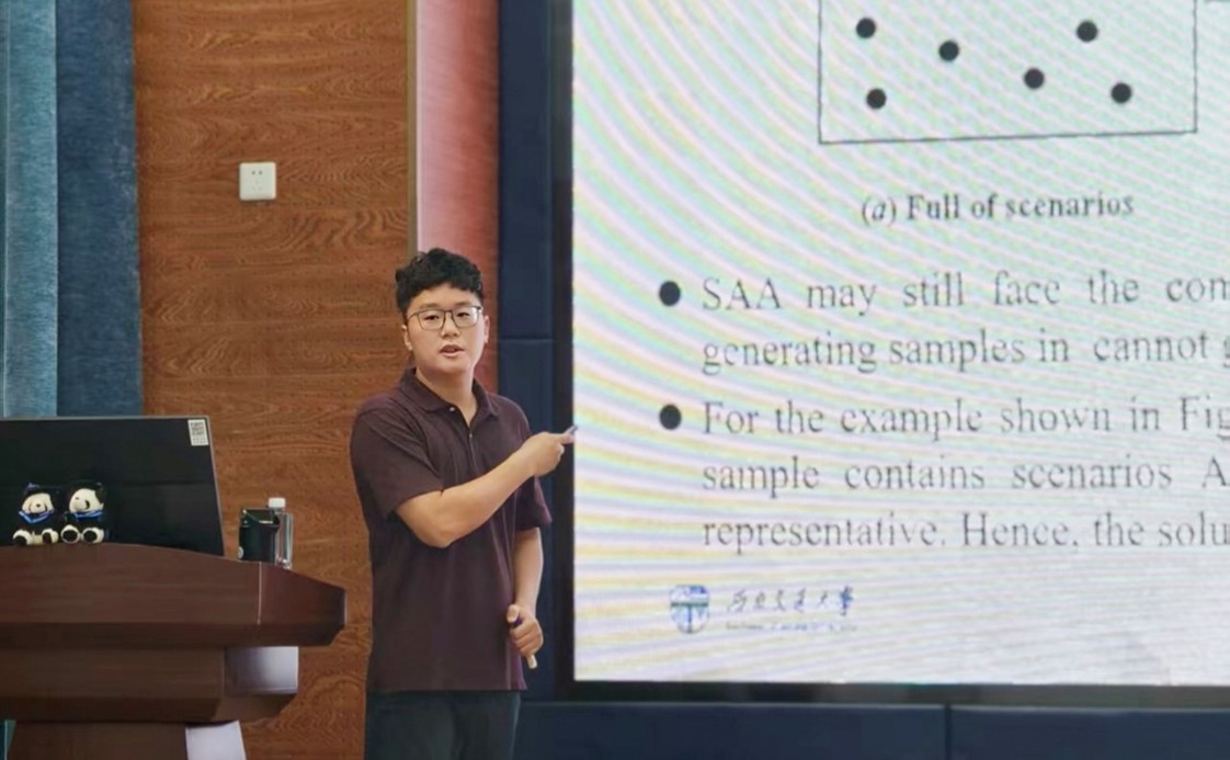 7月8日下午,英国上市365官网胡少龙老师带来题为《基于情景聚类的优化算法设计——以求解两阶段随机规划模型为例》的精彩讲座。此次讲座聚焦应急物流网络中的选址-库存联合决策问题,运用两阶段随机规划处理不确定性。为克服该规划因情景众多导致的计算难题,讲座重点介绍了结合情景聚类等改进方法,通过聚合相似情景有效提升求解效率。
