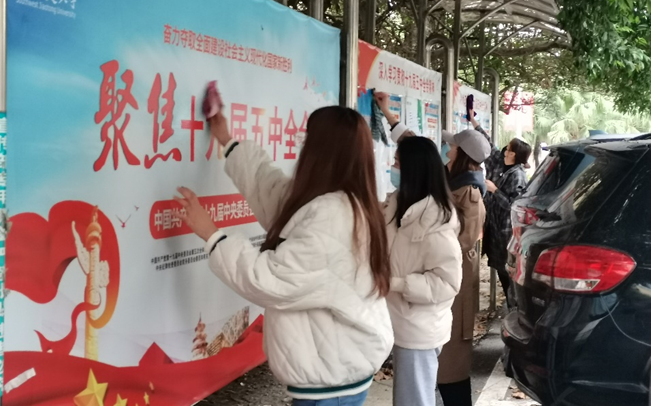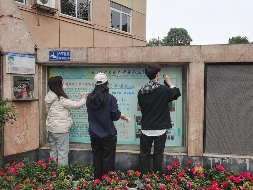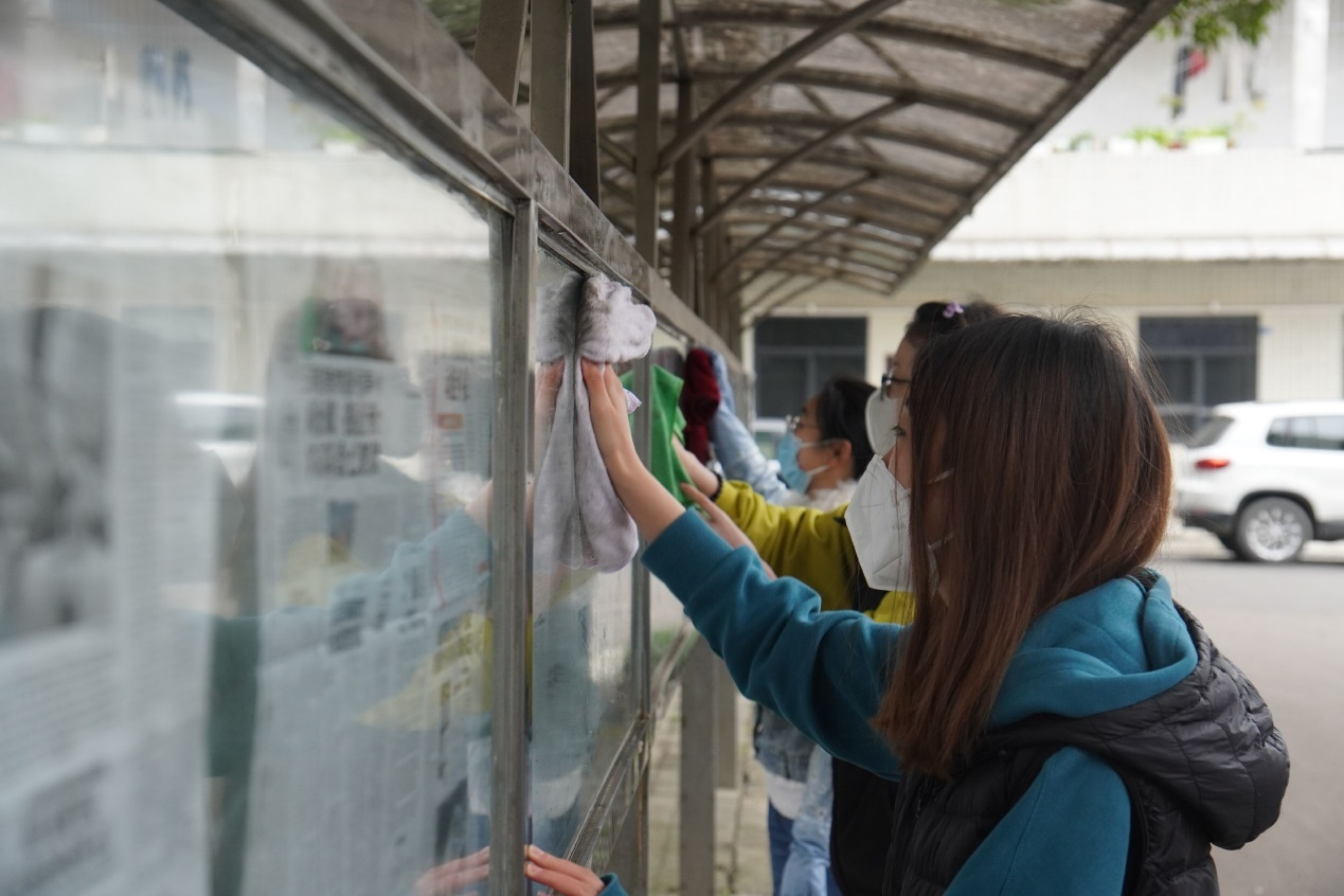 第一个小组负责的是英国上市365官网子弟小学旁宣传栏的清理工作。活动伊始,组长给各个组员分配了明确的任务,让本次志愿活动有条不紊地进行。