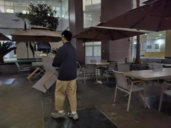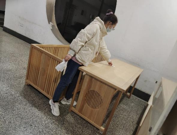 在接近一个小时的巡逻检查过后,四人在一楼进行了最后的收尾工作。他们协作将一楼的桌椅摆放归位,清理桌面垃圾。在大家认真仔细的检查下,终于圆满完成了志愿工作。