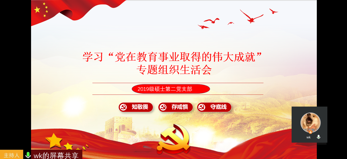 2021年6月20日,英国上市365官网硕士2019级第二党支部通过腾讯会议网络平台开展“学习党在教育事业取得的伟大成就”专题组织生活会。活动由党支部书记王可主持,党支部全体成员与会。