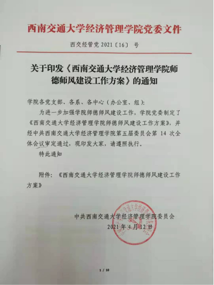 在前期调研和广泛征求意见的基础上,2021年4月8日学院党委召开第14次党委会议,审定了《英国上市365官网师德师风建设工作方案》。方案明确了学院师德师风建设的指导思想、目标任务和师德师风的基本要求,提出了建立师德师风建设工作体系、强化师德师风专项教育、严格师德师风考核管理、加强师德师风教育宣传和激励、开展教师心理健康教育等举措。