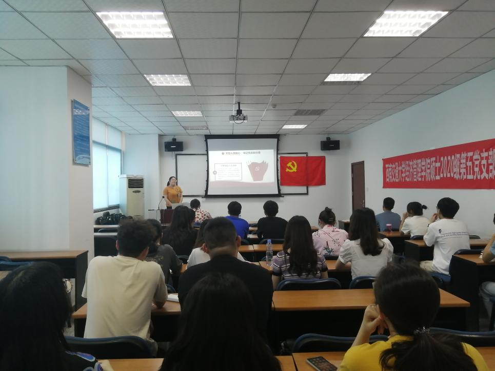 2021年6月10日下午14:30,英国上市365官网硕士2020级第五党支部于0316教室开展“学党史 守初心”专题党课学习。本次会议主要是党支部书记杨春洪为支部讲授专题党课,会议由卢婧茹同志主持,出席会议的有支部内党员,预备党员和入党积极分子。