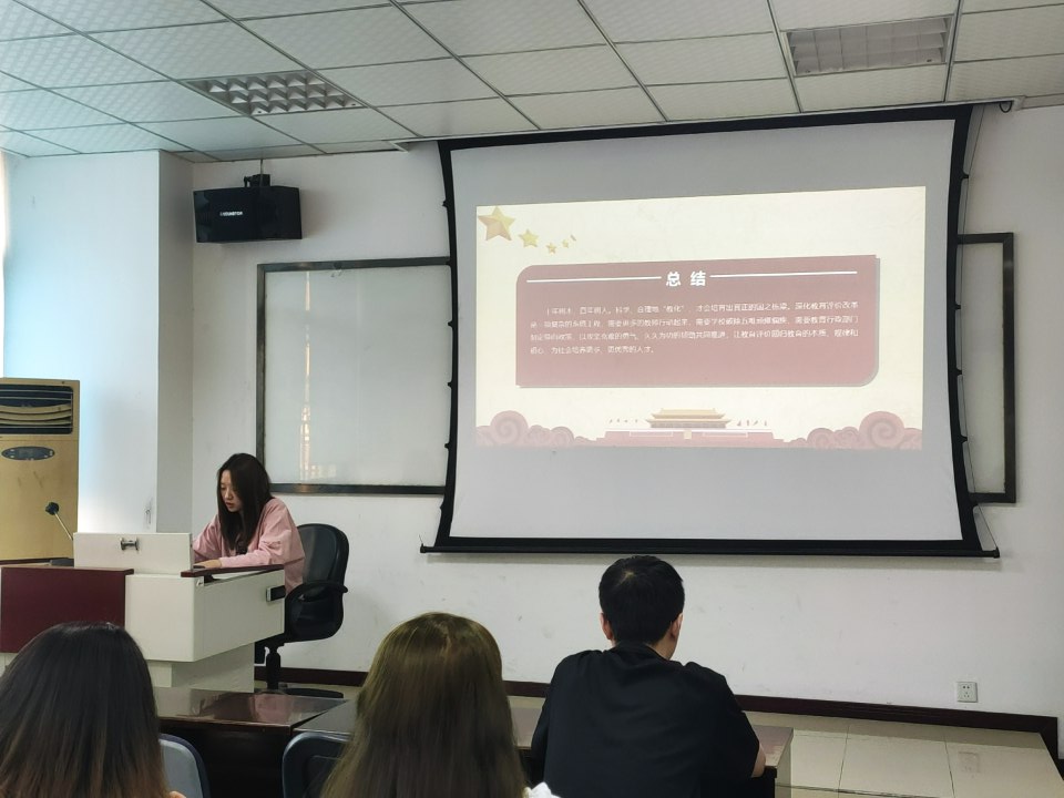 首先,何秋蓓同志向支部同志介绍了此次改革的目标分两个阶段:①第一阶段:经过5至10年努力,各级党委和政府科学履行职责水平明显提高,各级各类学校立德树人落实机制更加完善,引导教师潜心育人的评价制度更加健全,促进学生全面发展的评价办法更加多元,社会选人用人方式更加科学。②第二阶段:到2035年,基本形成富有时代特征、彰显中国特色、体现世界水平的教育评价体系。