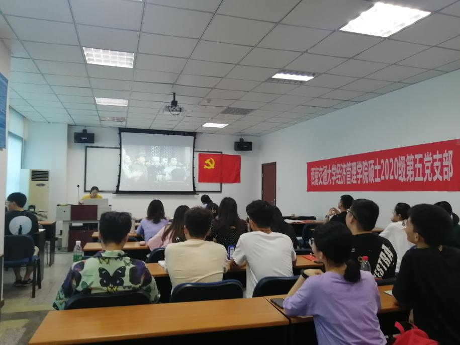 2021年5月14日下午16:00,英国上市365官网硕士2020级第五党支部开展党史、新中国史专题学习。本次会议由两部分组成:学院党委书记王斌为支部讲授“从百年大党迈向百年强党”主题党课、支部成员何汶昱带领支部成员学习新中国史。出席会议的有学院党委书记王斌及支部内党员,预备党员和积极分子。