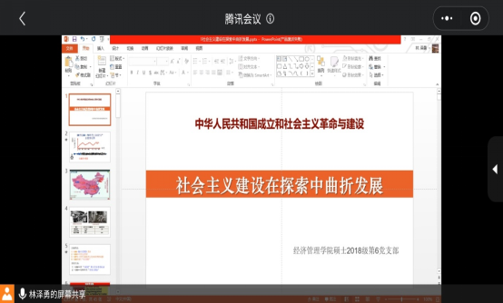 2021年4月29日20时,英国上市365官网硕士2018级第六党支部专题组织生活会在腾讯会议上召开。此次会议由党支部书记林泽勇同志主讲,硕士2018级第六党支部全体党员参加。会议主题围绕“社会主义建设在探索中曲折发展”进行了学习和探讨。