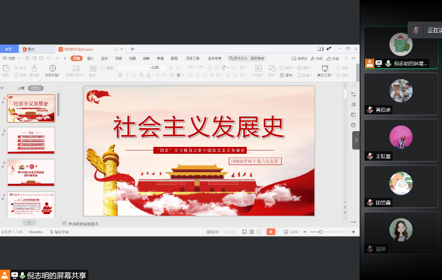 2021年1月7日晚上20点,英国上市365官网硕士2018级第六党支部专题组织生活会采取线上的方式,在腾讯会议召开。会议由党支部组织委员倪志明同志主讲,硕士2018级第六党支部全体党员参会。会议围绕主题“四史”学习教育之新中国社会主义发展史进行了学习和探讨。