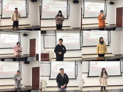 民主评议大会正式开始,党员从工作、学习、生活等方面对自己2020年进行了“批评与自我批评”,并提出了未来整改方向及措施。党支书鲁心洁同志首先发言:在过去的一年,主要存在对党的基础理论知识掌握不牢的问题;在工作和学习上表现出了比较明显的拖延性,该完成的工作和任务不能及时动手解决;作为支书,开展的支部活动缺乏特色,支部成员的积极性也有待提高。因此针对上述问题,鲁心洁提出了相应的解决措施,如:多利用媒体资源,如学习强国来深入学习党的理论知识;做好计划表,严格在规定时间内执行完任务;每周一次体育锻炼;支部活动可以学术研讨的形式来进行。