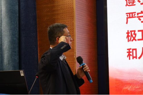 最后,在王斌同志领誓、夏显波同志监誓下,到会全体党员同志庄重宣誓、重温入党誓词。英国上市365官网党委党史学习教育动员大会顺利结束。