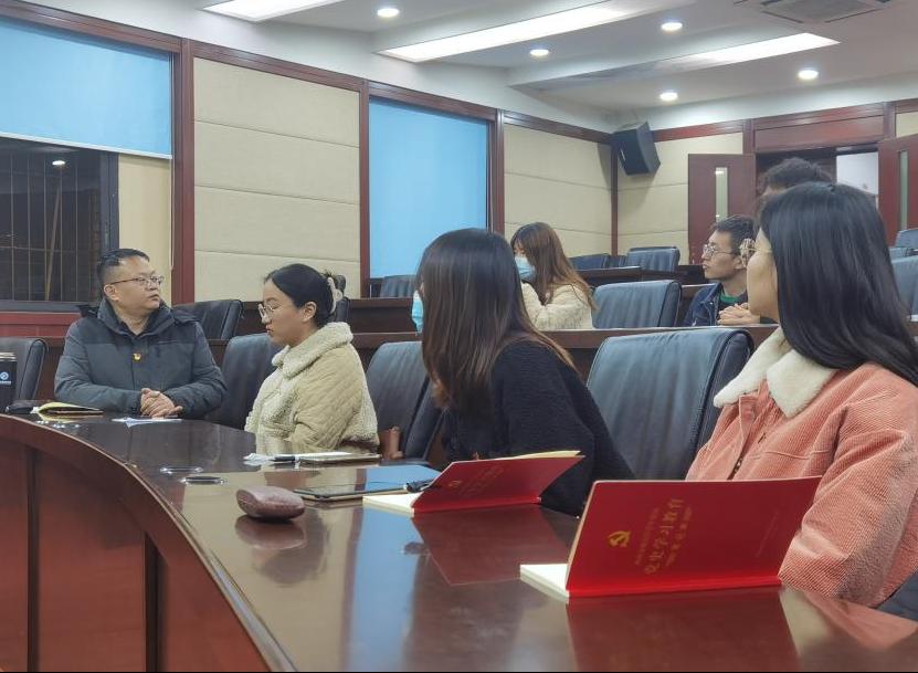 12月21日,硕士2021级第五党支部开展学习“党的十九届六中全会精神”主题党日活动。活动由支部书记袁明烨同志主持,联系本支部的学院党委委员郭强同志出席指导。支部内党员、积极分子参会。