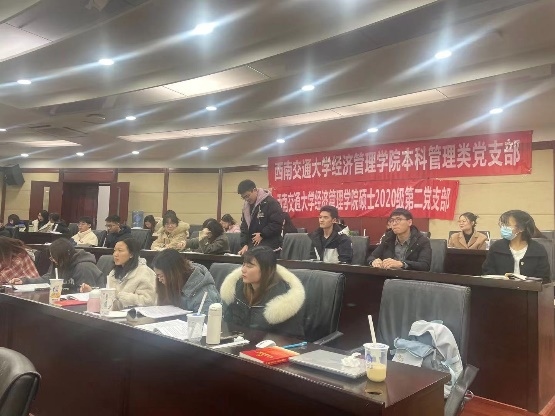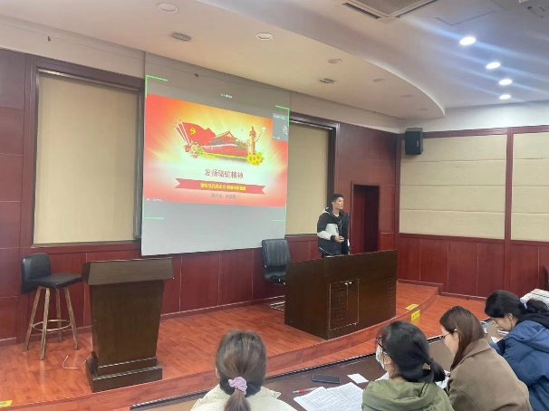 习近平总书记在党史学习教育动员大会上的讲话指出:“我们党的历史,就是一部不断推进马克思主义中国化的历史,就是一部不断推进理论创新、进行理论创造的历史。”在建党百年之际,回望总结我们党推进马克思主义中国化的历史进程,深刻把握马克思主义中国化百年历程的创新成果及基本经验,是继续推进马克思主义中国化,发展当代中国马克思主义、21世纪马克思主义的必然要求。因此,为了引导党支部同志们进一步学习马克思主义理论,深入理解马克思主义的精神实质和思想精髓,2021年12月16日下午,英国上市365官网硕士2020级第二党支部联合本科管理类党支部在九里校区零号楼0224教室举办“庆百年党史,发青春之声”经典故事演讲比赛。本次演讲比赛由硕士2020级第二党支部官慧同志主持,到场老师有贾佳、苏扬以及张媛媛。