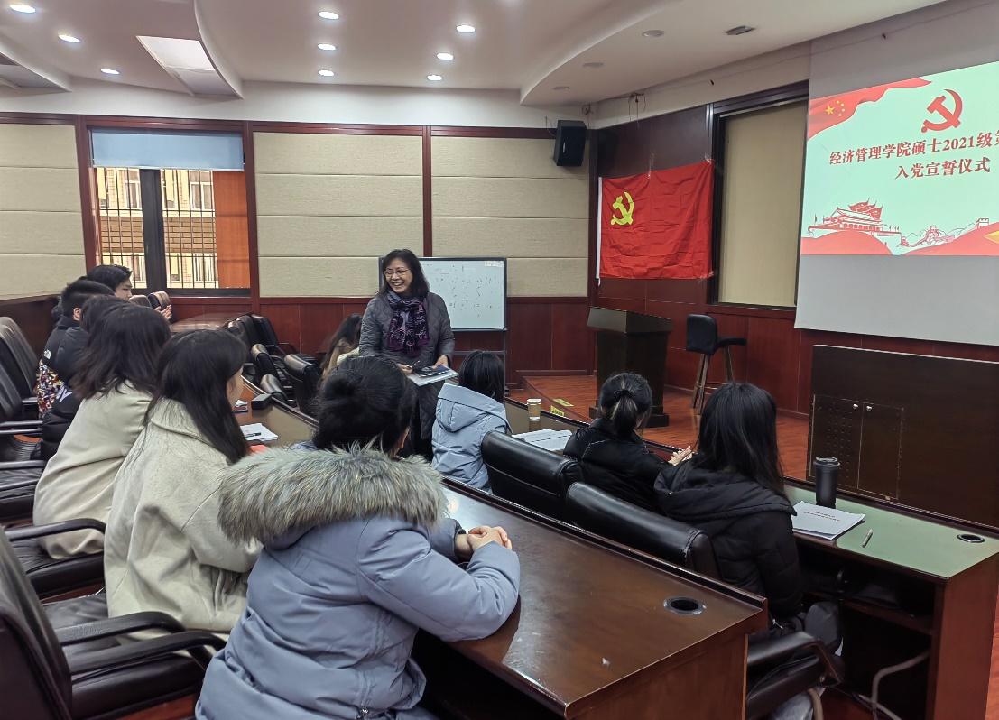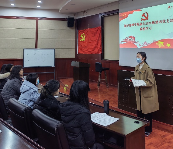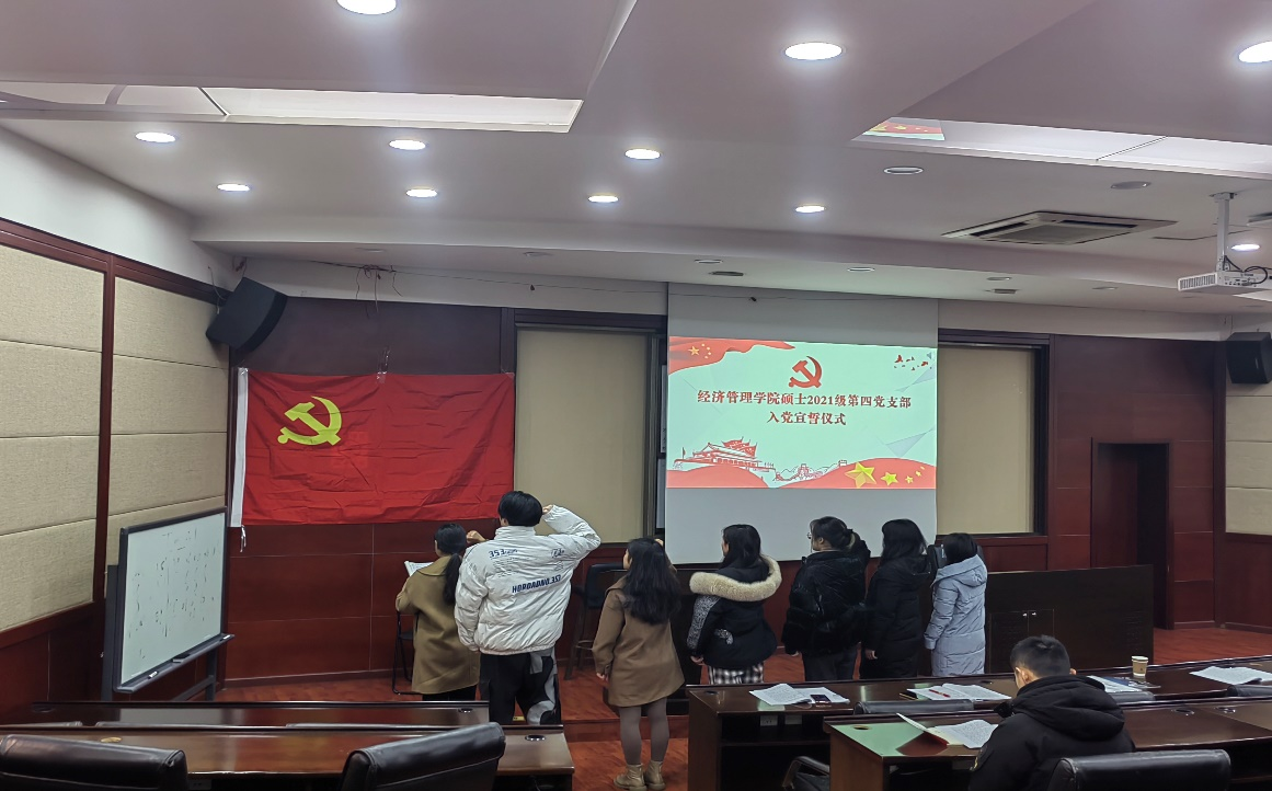 2021年12月30日下午三点在九里校区0224教室,英国上市365官网硕士2021级第四党支部开展了“党的十九届六中全会精神”的政治学习活动及预备党员入党宣誓仪式。活动由党支部书记吴欣悦主持,校巡视组陈燕灵老师出席指导,党支部共30人全部参加了此次活动。