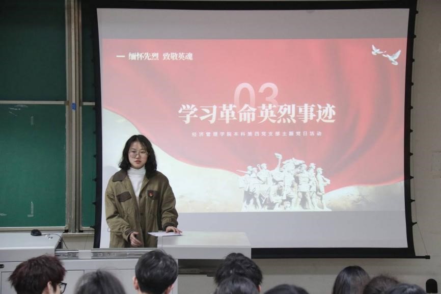5月4日,党支部举行“新时代的青年”五四青年节专题党课,号召学生党员弘扬五四精神、担当时代使命,与新时代同向同行,敢于拼搏、团结奋斗,争做有理想、敢担当、能吃苦、肯奋斗的新时代好青年,努力成长为堪当民族复兴重任的时代新人。