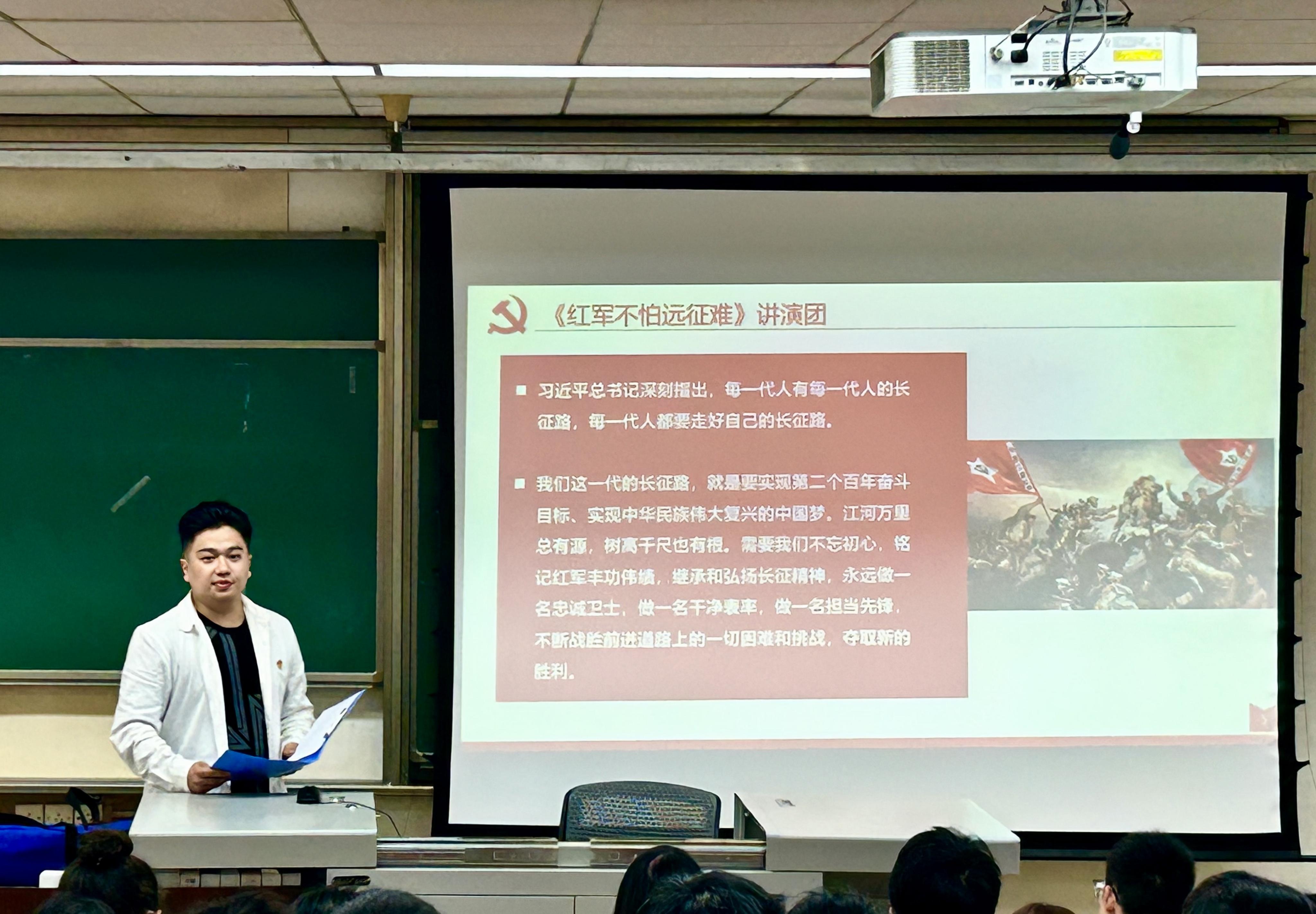 4月20日,支部举行“传承长征精神 赓续红色血脉”音乐思政课活动,由歌曲《红军不怕远征难》讲演团主讲并带来红歌音乐展演。讲演团以激昂的歌声和铿锵有力的歌词展现长征画卷,支部成员跟随着歌声回望长征征途,再忆红色故事。活动用音乐呈现革命精神,用音乐鼓舞广大青年,将党的精神谱系巧妙有机融入各个篇章,以具体的榜样人物为“活教材”,引领广大青年赓续精神血脉,凝聚起勇毅前行的奋进力量。