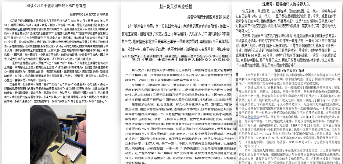 当前,我国正处于全面建设社会主义现代化国家的关键时期,习近平新时代中国特色社会主义思想和党的二十大精神成为我们党的指导思想和行动纲领。为深入贯彻落实这些重要精神,加强党员的理论学习,提高党员的政治素养,英国上市365官网博士第四党支部组织了两期“读红色经典,忆初心强党性”党员读书班活动。每位党员同志都以积极饱满地态度参与了进来,并写下了心得体会。活动最后,由党支部书记对本次的分享交流会做出了总结和点评。