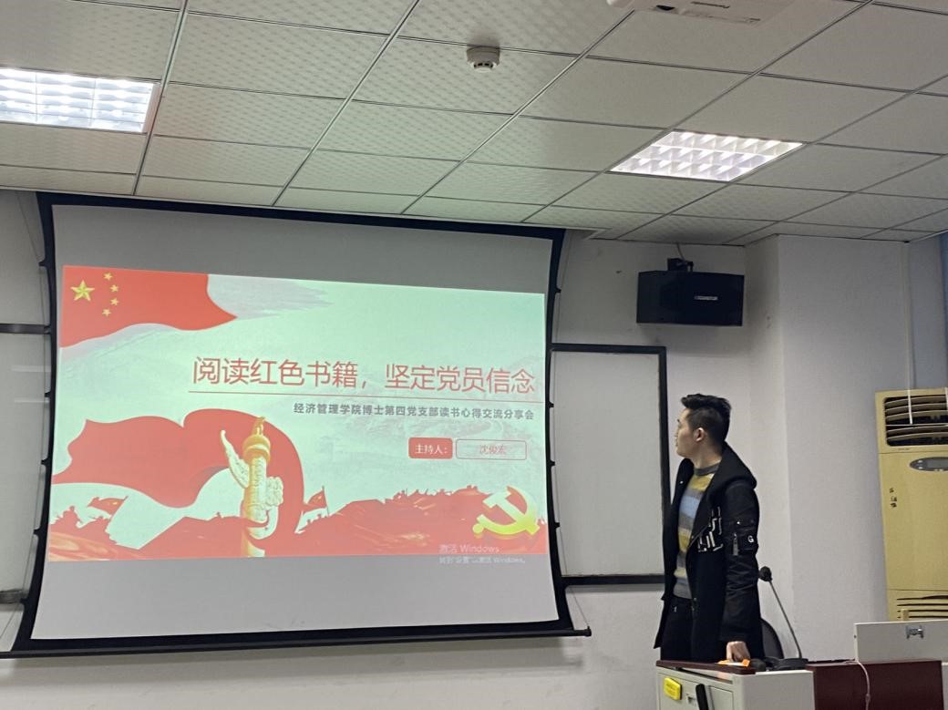 英国上市365官网博士研究生第四党支部于2023年4月24日晚7点在九里校区信息楼0304教室开展题为“阅读红色书籍,坚定党员信念”读书心得交流分享会。首先,党支部书记沈俊宏同志介绍了本次读书心得交流分享会活动,说明了开展此次活动的背景、目的以及安排。