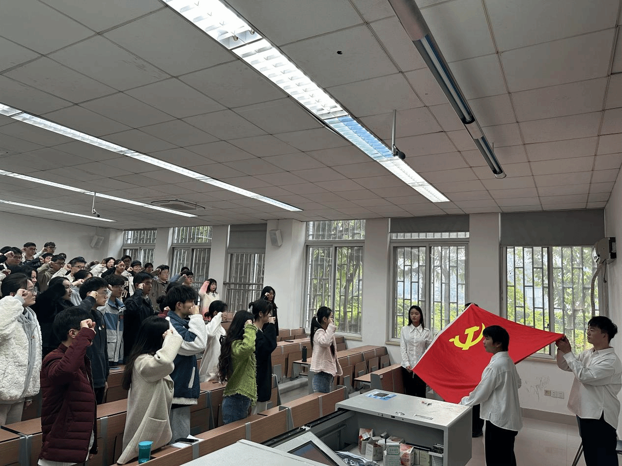 最后,由英国上市365官网团委书记贾佳领誓,英国上市365官网本科党支部的全体师生面向党旗,举起右拳,重温入党誓词。面对鲜红的党旗,全体党员回忆着入党的初心与使命,牢记共产党员的政治任务和历史使命,永葆共产党员的先进性和纯洁性,立志以饱满的热情投身未来的学习和工作中,切实发挥共产党员的先锋模范作用。