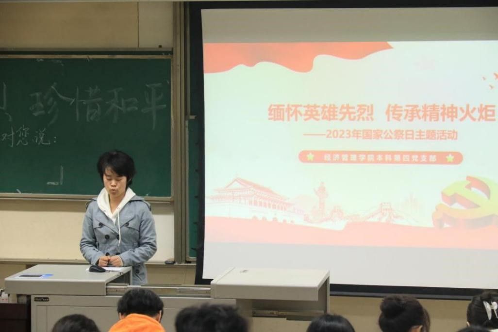2023年12月13日是我国第十个南京大屠杀死难者国家公祭日。为缅怀先烈、传承红色基因,淬炼崇高信念、传承民族精神,进一步加深广大青年对国家公祭日的认识和理解,12月7日,英国上市365官网本科第四党支部在九里校区逸夫馆4218组织开展了“缅怀英雄先烈,传承精神火炬”主题党日活动,鼓励广大党员继承先烈遗志,不忘初心使命,厚植家国情怀。